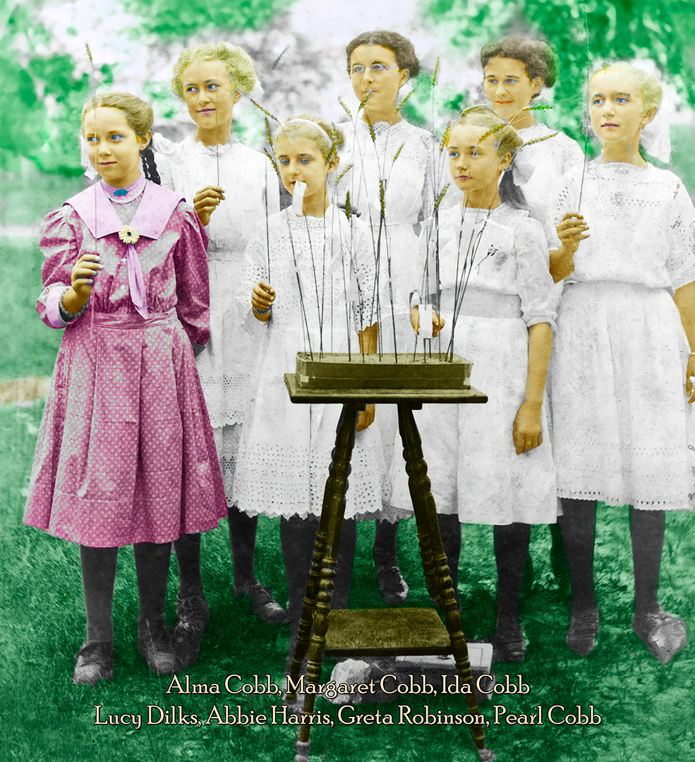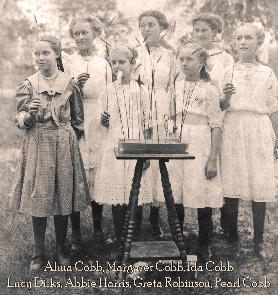 1912: "Parable of the Wheat and Tares" | Lucy Dilks, Alma Cobb, Abbie Harris, Margaret Cobb, Greta Robinson, Ida Cobb, Pearl Cobb