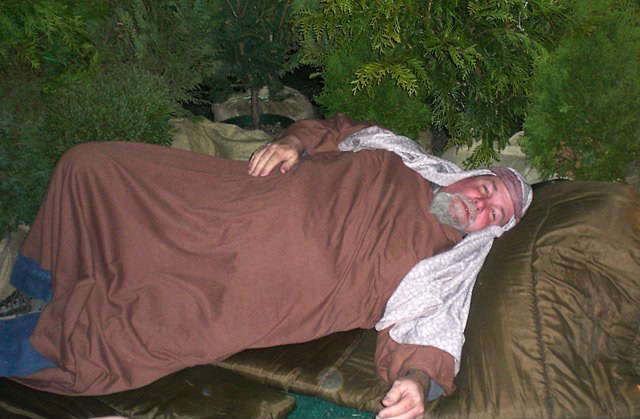 Larry Brown lying down on the job (as Easter drive-through character)