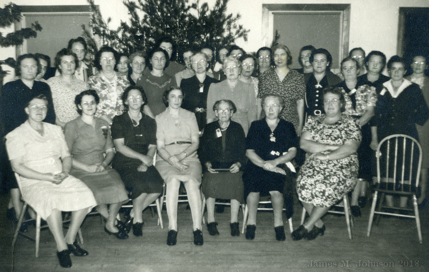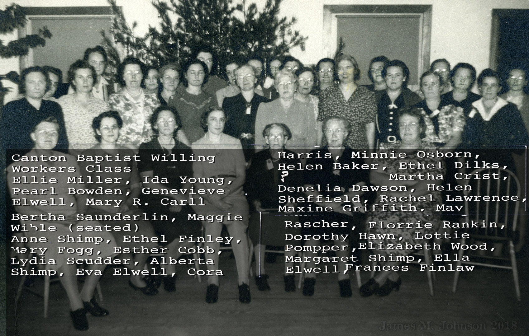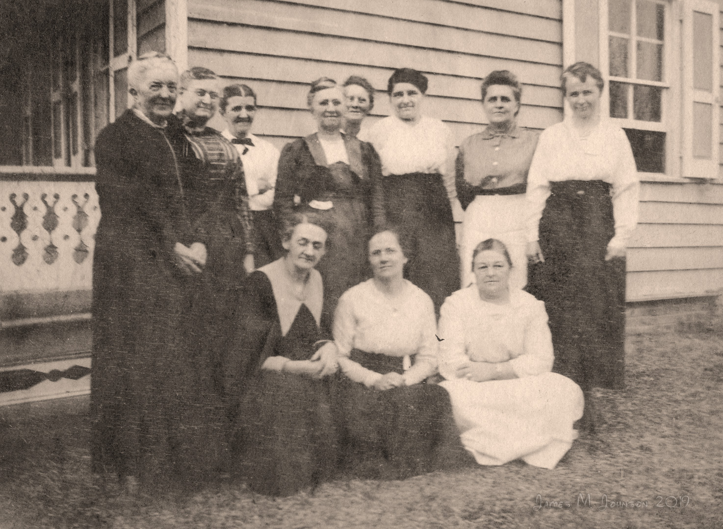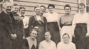 3/2/1921: Ladies Aid - (Standing) Mrs. Griffith (pastor's wife), Lizzie DuBois, Phoebe Hancock, Anna L. Elwell, "Mrs. Baker??" Elsie Vanneman, Ellie Turner, Edna Baker; (Sitting) Ann Smick, Mabel Shimp, Amanda Parkell.