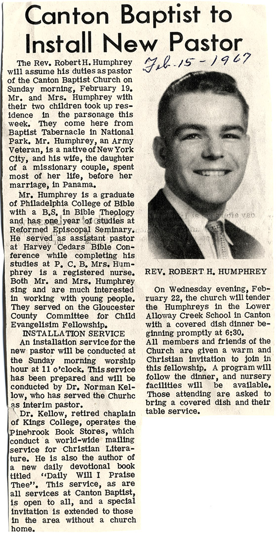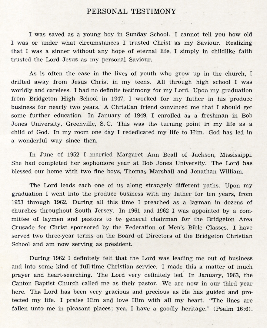 1965: Rev. Don Tice (1963-1965) personal testimony