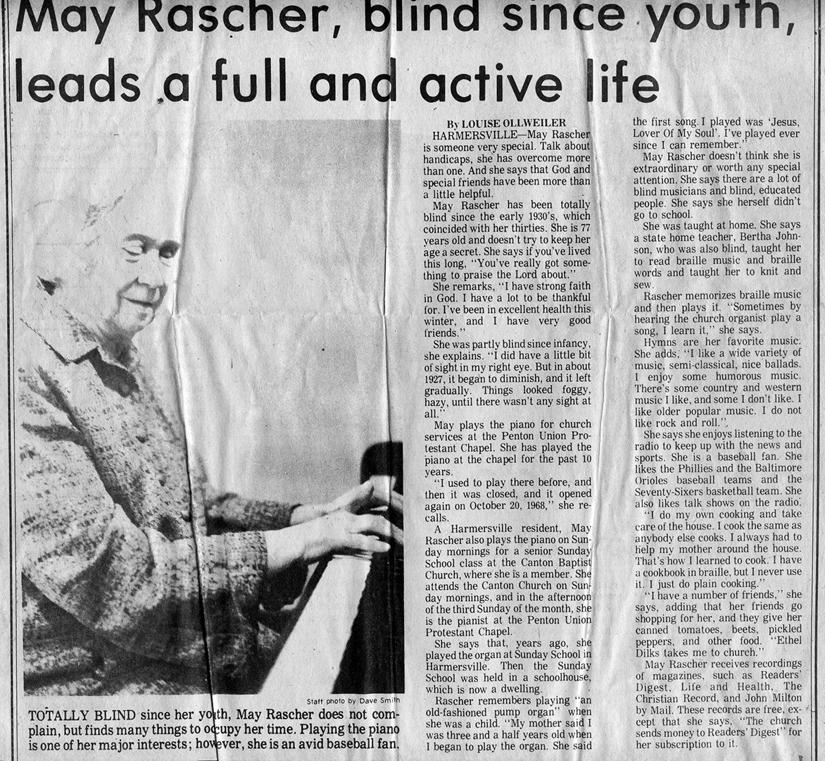 Ginni Coffin, who served as organist after her mother, Libby Scull, retired.