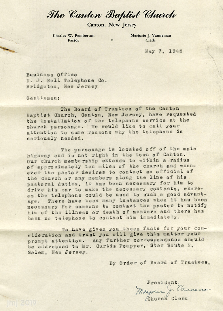 1950: C. E. Smick left his autograph in the attic of the sanctuary addition.