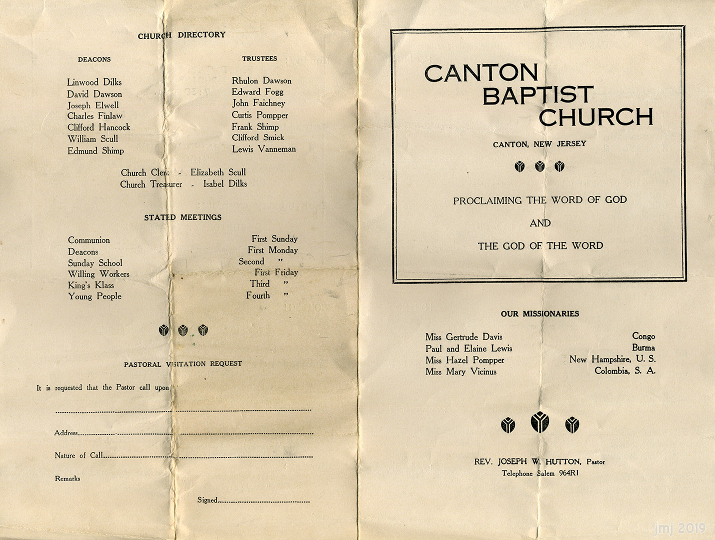 Church bulletin cover ca. 1949-1954